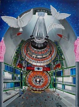 LHC, Genesis, oil on canvas, frame (aluminum, plastic painted by airbrush), 156 x 224, 2011